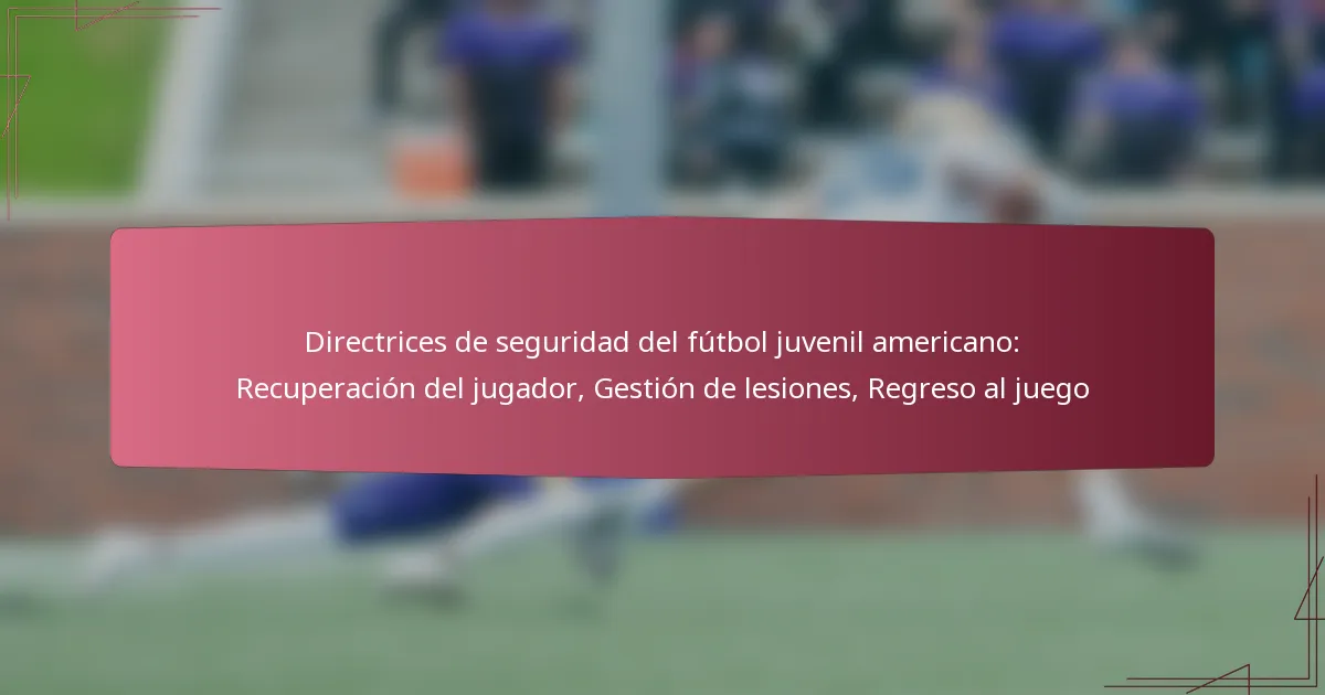 Las directrices para el retorno al juego después de una lesión son cruciales para garantizar la seguridad y la salud de los jóvenes atletas. Estas directrices se centran en evaluar la preparación, implementar protocolos de reintegración gradual y mantener un seguimiento continuo de la salud para prevenir lesiones adicionales.